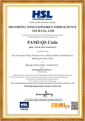 莎士比亞說:“無暇的名譽是世界上最純粹的珍寶,失去了良知、名譽,人類不過是一些鍍金的糞土,染色的泥塊。”一個企業(yè),一個品牌,若要永遠屹立不倒,被人們所認可,首先應(yīng)得到社會的認可,客戶的認可,員工的認可,同泰維潤公司從一九九五年五月十八日成立,20年間同泰維潤公司從一家小作坊,到現(xiàn)在中國食品防腐劑十強企業(yè),國家級高新技術(shù)企業(yè)靠的就是良知和名譽 同泰維潤公司遵循用良知做事,做良心企業(yè),做良心產(chǎn)品這一宗旨?!皠?chuàng)世界著名品牌、造世界一流產(chǎn)品”是公司崇高的經(jīng)營理念,為達到這一理念完全落地,我們和“中國農(nóng)業(yè)大學”、"浙江大學"、“山東農(nóng)業(yè)大學”、“青島科技大學”、“棗莊職業(yè)學院”合作建立了政、產(chǎn)、學、研實驗室。已獲得發(fā)明專利6項,實用新型專利30項,計算機著作權(quán)5項,外觀包裝專利6項,公司產(chǎn)品已經(jīng)遠銷歐洲、俄羅斯、東南亞、南美洲、非洲等53個國家,370多個客戶,公司年產(chǎn)值已突破1.7億元。